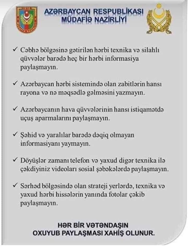 «Ermənilər Azərbaycan və Türk dilini öyrənib, Azərbaycan nömrəsi ilə vətəndaşlarımıza yazır ki, «Azərbaycanda nə baş verir?». 0505582881 və 0552298493 , +90 539 507 06 81 bu nömrələrdən mesaj gələ bilər. Siz o mesaja qətiyyətlə cavab verməyin. Sizdən məlumat toplayıb özləri Azərbaycanın planlarını öyrənir və yeni plan qururlar.