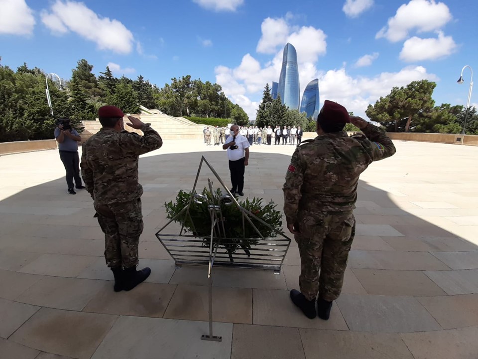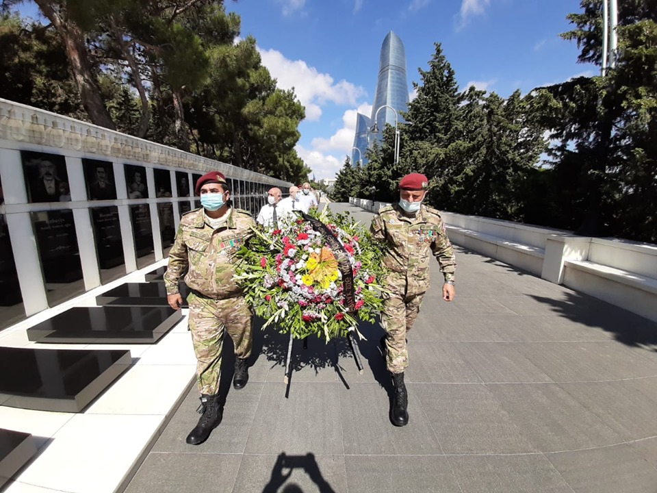 AVMVİB üzvləri Şəhidlər Xiyabanında Əbədi Məşəl Abidəsinə əklil və şəhid məzarlarına tər çiçəklər qoydular. Pandemiyanın tələblərinə və sosial məsafəni gözləməklə şəhid məzarları yad edilib.
