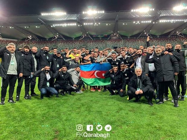 Oyundan sonra Ağdam komandasının futbolçuları bir yerə yığışıb və əllərində Azərbaycan bayrağı ilə əsgər salamı verib.