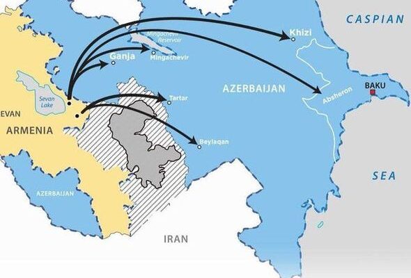 Beynəlxalq Münasibətlərin Təhlili Mərkəzinin İdarə Heyətinin sədri Fərid Şəfiyev öz “Twitter” hesabından Ermənistanın Azərbaycanın müxtəlif ərazilərinə raket hücumlarını göstərən xəritə paylaşıb.