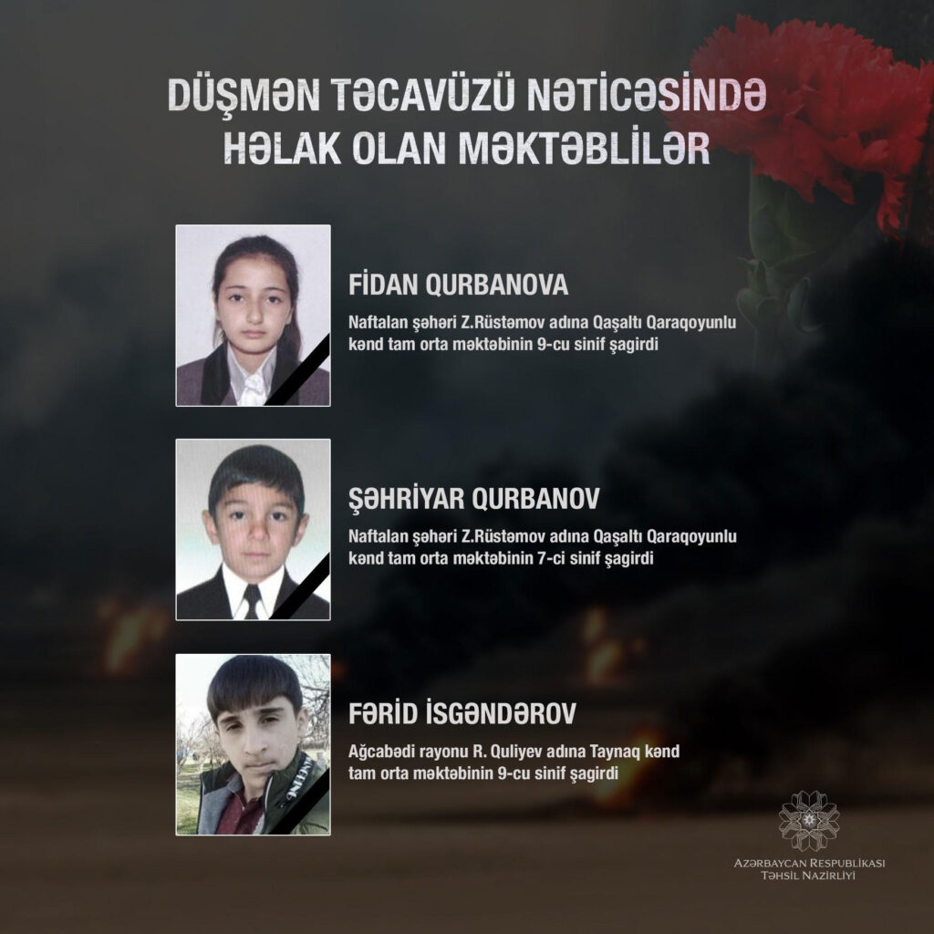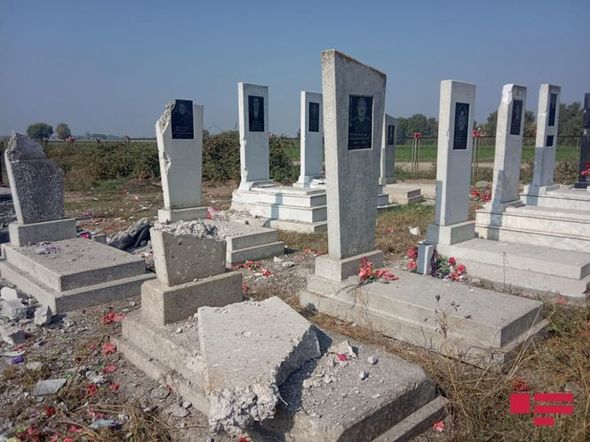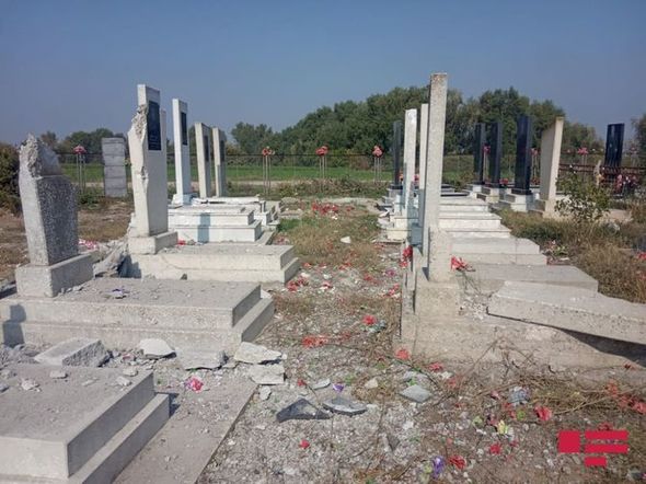 Ermənistan Silahlı Qüvvələrinin ağır artilleriyadan atdığı top və raket mərmiləri Ağdamın Əhmədağalı-Çıraqlı, Xındırıstan-Paşabəyli, Tərtərin Qapanlı- Qarağacı kənd məzarlıqlarını dağıdıb. Sonrakı günlərdə isə Ağcabədi qəbristanlıqları atəşə məruz qalıb. Şuşada kilsəyə dəyən qəlpənin dərdini çəkən şərəfsiz Zatulin, Solovyov və onların həmcinsləri bu vandalizmə və genosid aktlarına görə suçludurlar. Dəyişən heç nə yoxdur. Erməni 30 ildir eyni cinayətləri törədir və dünya isə vicdansızcasına susur.