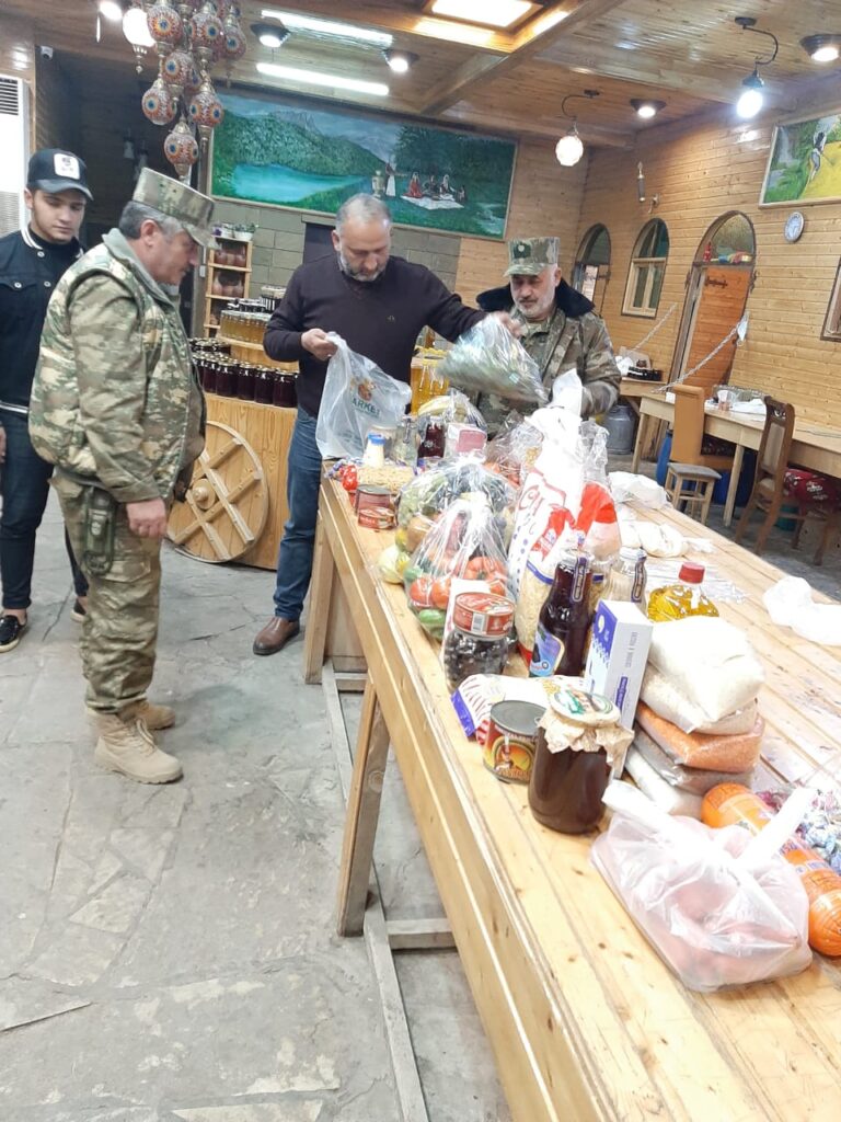 Xaıqımızın vətənpərvər kəsimi ordumuzla bir yerdə olmağa çalışır. Onun yanında olmağı öz əməlləri ilə sübut etməyə çalışır. Müxtəlif şəhər və rayonlarımızda yaşayan qeyrətli soydaşlarımız yorulmadan və öz imkanlarını əsirgəmədən əsgər və zabitlərimizə dayaq olmağa çalışmaqdadırlar. Hadisələrin ilk günündən Azərbaycan Vətən Müharibəsi Veteranları İctimai Birliyi (AVMVİB) sədrinin müavini İslam Səfərov və AVMVİB Göygöl rayon şöbəsinin sədri Həbib Hüseynov bu yoldadırlar. Son görüş zamanı onlara bu xeyirxah işlərin görülməsində daim dəstək olan Gəncə Nur Marketin sahibi Hacı Rövşən Məmmədovun ordumuza və döyüşən əsgərlərimizin ailələrinə göstərdiyi diqqət və qayğıdan ağızdolusu danışdılar və bildirdilər ki, ordumuza. şəhid ailələri və əsgər ailələrinə bu gün də Hacının sovqat payları var. Qəlbi vətənlə və orduyla döyünən Hacı Rövşən Məmmədova baş çəkdik. Döyüşçü əsgərlərimizin və şəhid ailələri üçün ərzaq sovqatı hazırlanırdı.
