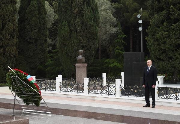 Prezident İlham Əliyev ulu öndər Heydər Əliyevin abidəsi önünə əklil qoydu.