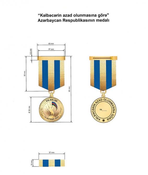 “Kəlbəcərin azad olunmasına görə” Azərbaycan Respublikasının medalı ilə Azərbaycan Respublikasının Kəlbəcər rayonunun işğaldan azad edilməsi uğrunda aparılmış döyüş əməliyyatlarında iştirak etmiş Azərbaycan Respublikası Silahlı Qüvvələrinin hərbi qulluqçuları təltif edilir.