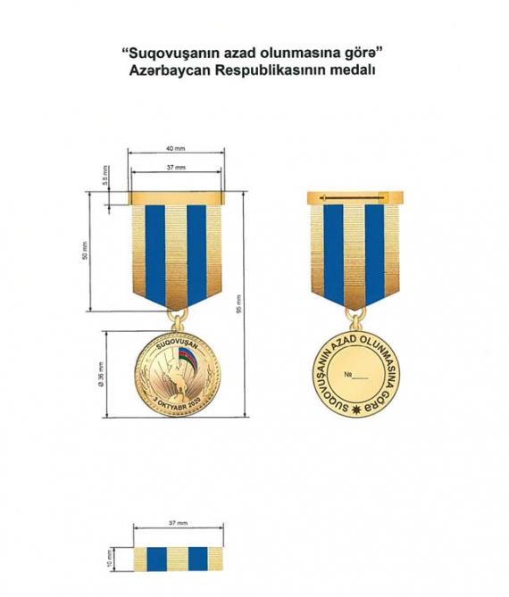 “Suqovuşanın azad olunmasına görə” medalı ilə Azərbaycan Respublikasının Suqovuşan kəndinin işğaldan azad edilməsi uğrunda aparılmış döyüş əməliyyatlarında iştirak etmiş Azərbaycan Respublikası Silahlı Qüvvələrinin hərbi qulluqçuları təltif edilir.