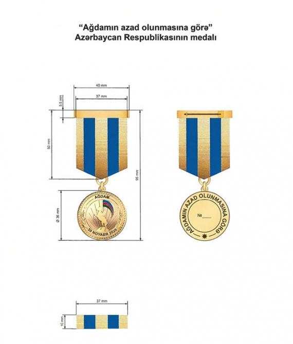 “Ağdamın azad olunmasına görə” Azərbaycan Respublikasının medalı ilə Azərbaycan Respublikasının Ağdam rayonunun işğaldan azad edilməsi uğrunda aparılmış döyüş əməliyyatlarında iştirak etmiş Azərbaycan Respublikası Silahlı Qüvvələrinin hərbi qulluqçuları təltif edilir.