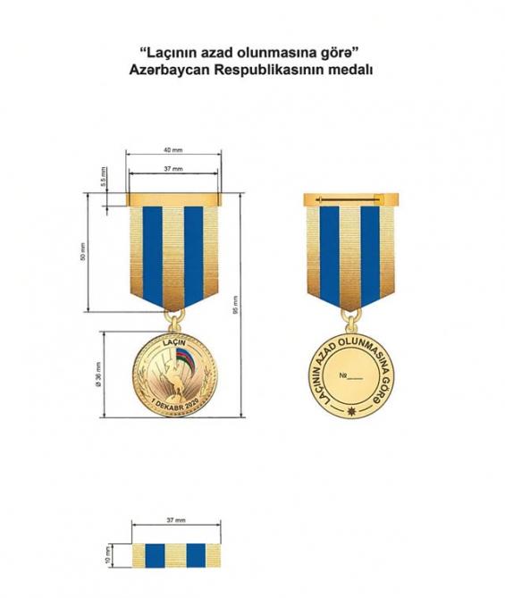 “Laçının azad olunmasına görə” medalı ilə Azərbaycan Respublikasının Laçın rayonunun işğaldan azad edilməsi uğrunda aparılmış döyüş əməliyyatlarında iştirak etmiş Azərbaycan Respublikası Silahlı Qüvvələrinin hərbi qulluqçuları təltif edilir.
