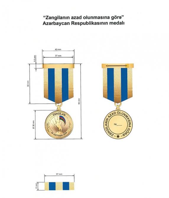 “Zəngilanın azad olunmasına görə” medalı ilə Azərbaycan Respublikasının Zəngilan rayonunun işğaldan azad edilməsi uğrunda aparılmış döyüş əməliyyatlarında iştirak etmiş Azərbaycan Respublikası Silahlı Qüvvələrinin hərbi qulluqçuları təltif edilir.