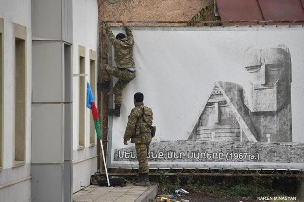 “Frans Press Agentliyi”nin (“Agence France-Presse”) fotoqrafı Karen Minosyanın lentə alnan forolarda Azərbaycan hərbçilərinin Laçının küçələrinə şanlı bayrağımızı asması əks olunur: