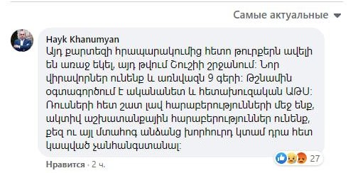 A. Xanumyan bir neçə dəqiqə bundan əvvəl Facebook-da bu haqda paylaşım da edib