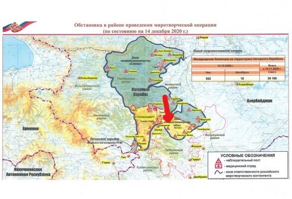 Rusiya Federasiyasının Müdafiə Nazirliyi Qarabağın yenilənmiş xəritəsini yayımlayıb.
