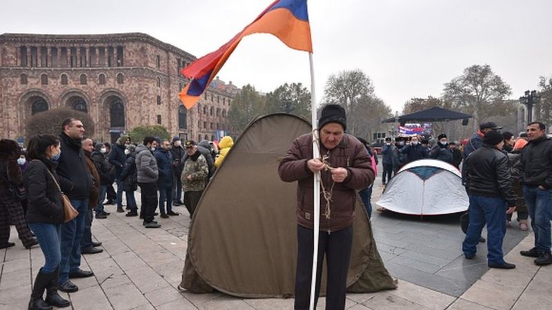 Etirazlar Dağlıq Qarabağda atəşkəs haqqında üçtərəfli bəyanat imzalandıqdan sonra başlayıb.