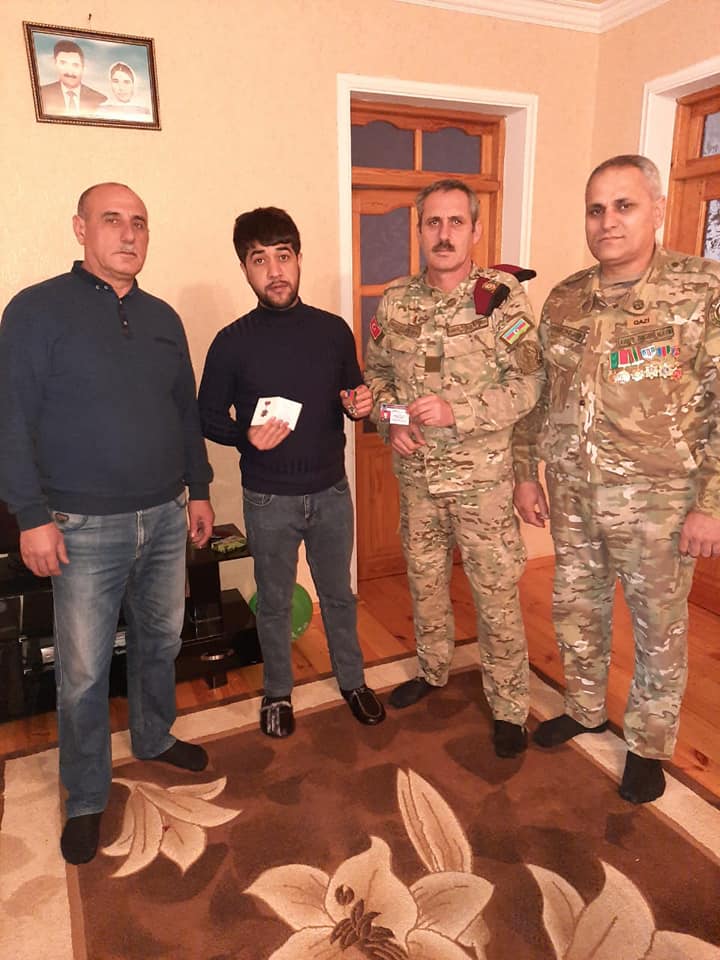 Sonra AVMVİB sədri Füzuli Rzaquliyevin əmri ilə imzalanmış «Müharibə Veteranı» Xatirə medalını və Birliyin üzvlük vəsiqəsini Asəf Qarayevə təqdim etdik.