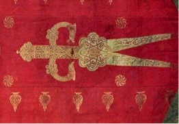 And oxunan piktogramı xatırladan, Çintemani adı da verilən, üç xal simvolu, əqrəbin ürəyi sayılan Antares ulduzunu simvollaşdırmasıdır. Bu motiv Osmanlıya qədər istifadə edilmiş və bütün Türk dövlətlərində hökmdarlıq simvolu olmuşdur. Çintemani motivi tək başına istifadə edildiyi kimi şimşək bənzəri bir simvol ilə birlikdə də istifadə edilmişdir. Bunlar bizə, bütün bu işarələrin Əjdaha bürcü ilə əlaqəli və kosmik ölçülü olduğunu göstərir. Əjdəha göy tanrısıdır və bahar yağışlarıyla birlikdə səmadan şimsəklərindən də göndərir. İndiki vaxtda «Üç Cemre» adı verilən və bahar dövründə, səmaya, torpağa və suya düşdüyü məlum qor, ya da atəş, kosmolojidir və əjdaha bürcü ilə əlaqəlidir. Ehtimalla and oxunan piktogram və üç ulduz, yəni çintemani motivi, bu anlayışın vizual tasvirləridir.1654-ci ildə ölən Timurlu dövləti kağanı İlik Buğra xanın bayrağındakı aləm, Çintemani muncuq üzərində oturmuş iki başlı əjdaha şəklindədir. Əjdaha, Çintemani Muncuq Türklərdə Alplıq simgəsidir. Emel Esinin yazdığına görə, Attilanın ya da Aresin qılınc əfsanəsi Türklər tərəfindən də bilinirdi və İskitlər də daxil Turan mədəniyyəti ətrafında yaşayan bütün türklər, bu qılınc üzərinə and içmə ritualı keçiridilər.