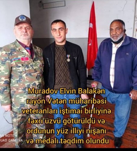 Belə ictimai fəallardan olan Elvin Muradov Birliyə fəxri üzv qəbul olunub və «Milli ordu-100» Xatirə medalıyla təltif edilib.