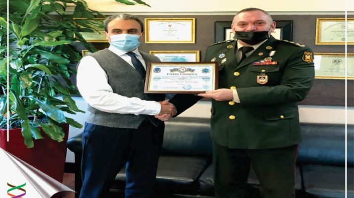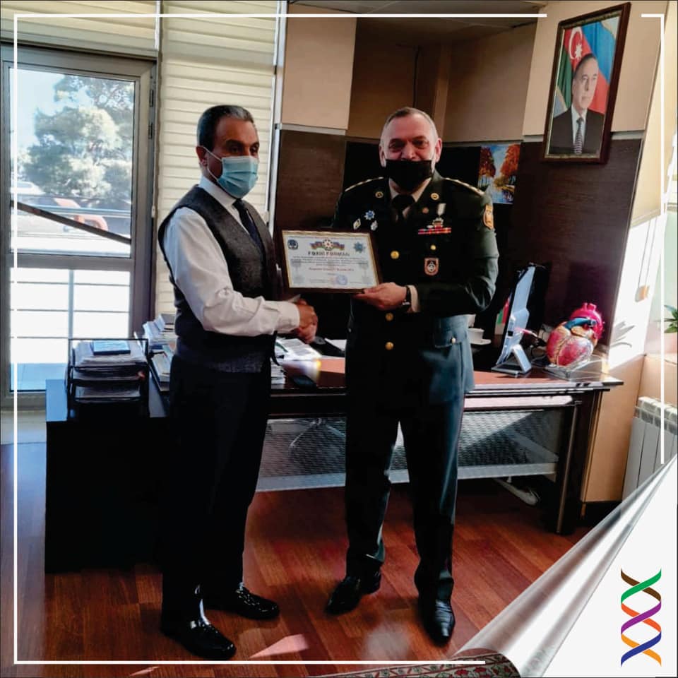 FƏXRİ FƏRMAN Prof. Dr. Kamran Musayevə “Azərbaycan Bayrağı” ordenli, Azərbaycan Vətən Müharibəsi Veteranları İctimai Birliyi (AVMVİB) Nəsimi rayon şöbəsinin sədri, müharibə veteranı, ehtiyatda olan polkovnik Elmar Hüseynovdan tərəfindən təqdim edilib.