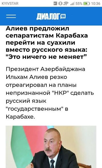 Bundan başqa işğaldan azad olunan ərazilərdə Azərbaycanın yeni beynəlxalq hava limanlarının tikintisinə başlaması, Azərbaycanda yeganə rəsmi dil Azərbaycan dili olduğundan, bunun Qarabağ bölgəsində də tətbiq ediləcəyinə dair ölkə başçısının fikirləri də Ukrayna mətbuatında yer alıb.