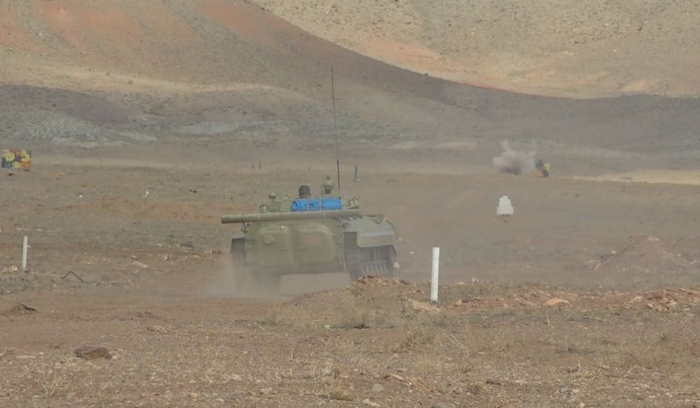 Zirehli texnikalar üzrə bilikləri yoxlanılan heyətlər döyüş texnikalarının silahlarından ustalıqla istifadə edərək hədəfləri sərrastlıqla məhv edirlər.