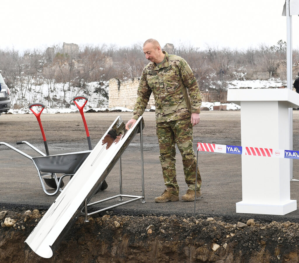 Sonra Prezident İlham Əliyev Hadrut-Cəbrayıl-Şükürbəyli avtomobil yolunun təməlini qoydu.