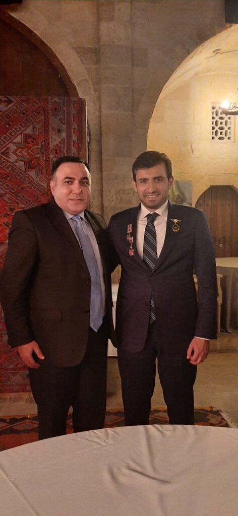AVMVİB sədri Füzuli Rzaquliyev müharibə veteranlarının minnətdarlığını bildirərək Selçuk Bayraktara Birliyin Xatirə medalını təqdim edib.