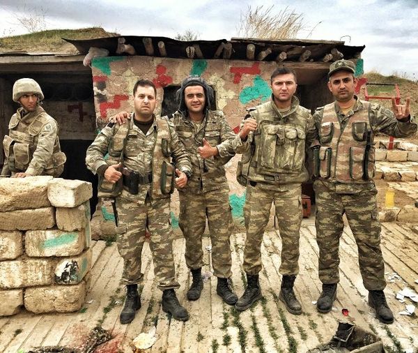 Soldan- sağa, leytenant Qurbanlı Vüsal qazi (02.10.20) — köməkçi vasitələrlə gəzir, kiçik çavuş Əsgərov Xəqani şəhid (29.09.20), Nayıbov Elədəniz qazi (01.10.20)- 20-dən artıq qəlpə gəzdirir bədənində.