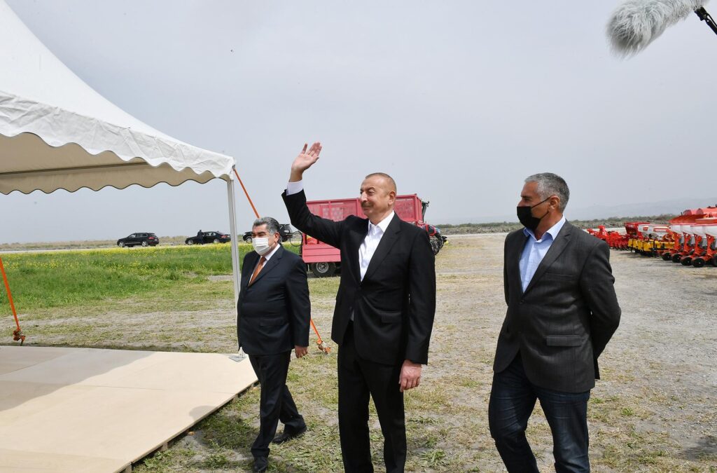 Dövlətimizin başçısı əkin sahəsində pambıq səpininə start verilməsi prosesini izləyib.