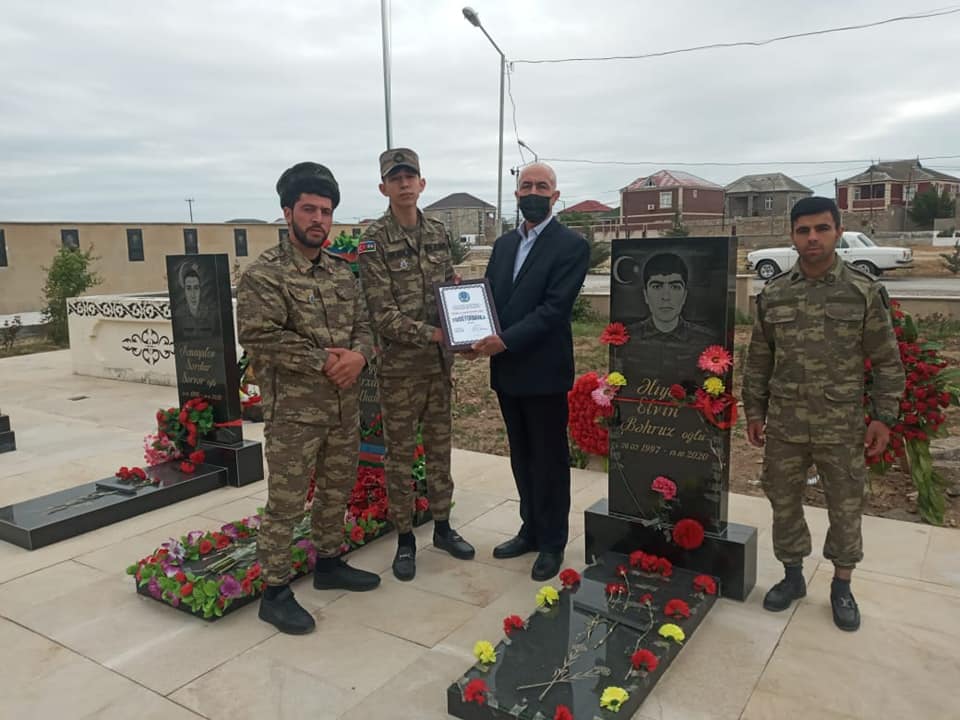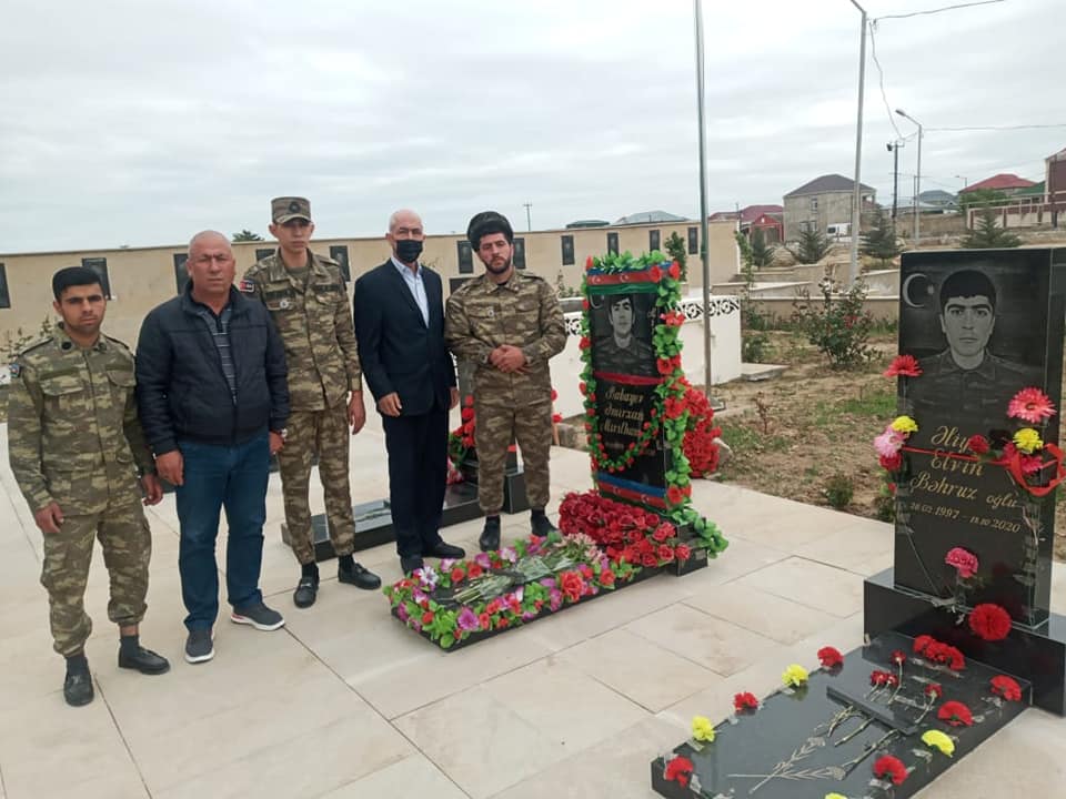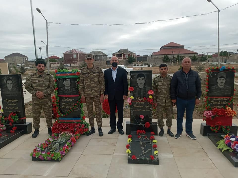10 may günü Muzəffər ordumuzun gənc qəhramanlarından olan yaralı Azad Sultanovun dəvəti ilə ona evlərində baş çəkildi, qazılərimizlə birgə Yeni Suraxanı qəsəbəsində şəhidlərimizin məzarları ziyarət edildi.