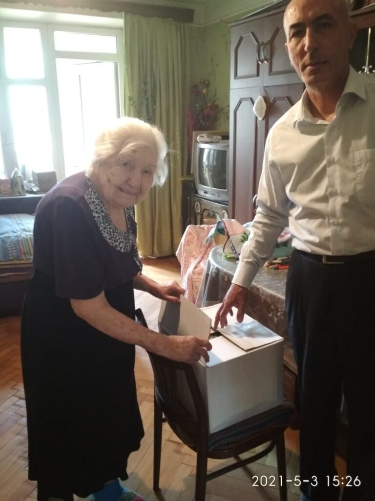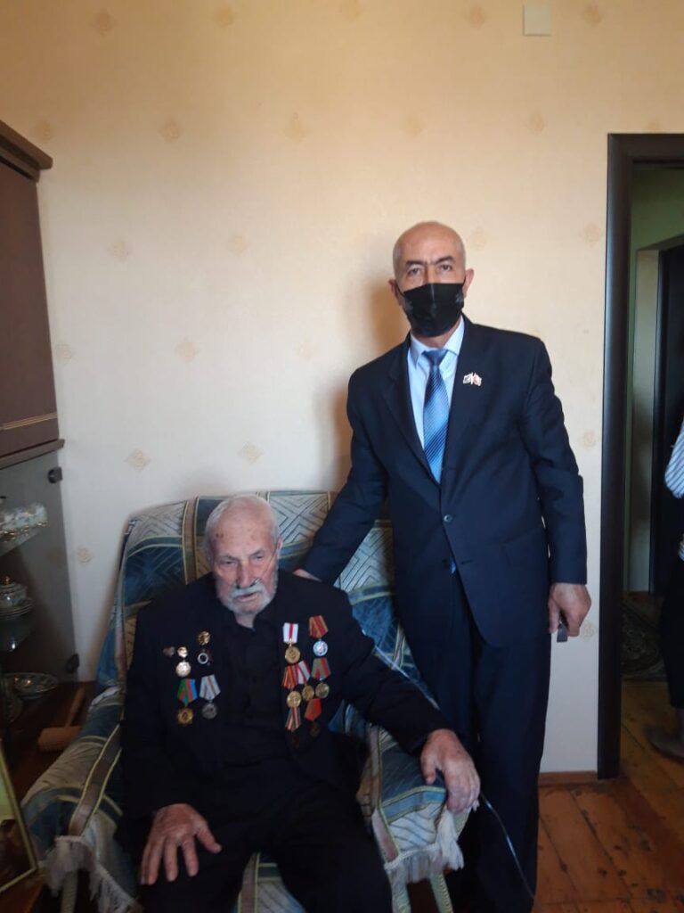 Öncə sədr Eldar Rüstəmov 9 may 2-ci Dünya Müharibəsi iştirakcılarından 100 yaşlı Fəryad Qurbanov, 97 yaşlı Cənnət Hüseynov və 98 yaşlı Belikov Aleksandrı ziyarət edib. Onların problemləriylə maraqlanıb.