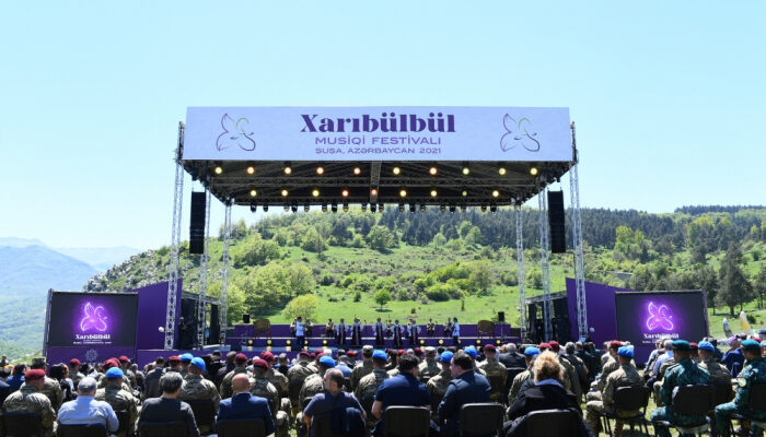 Şuşa Rayon İcra Hakimiyyətinin başçısı Bayram Səfərov “Xarıbülbül” musiqi festivalını izləyərkən yuxuya gedib.