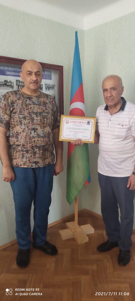 Azərbaycan Vətən Müharibəsi Veteranları İctimai Birliyi (AVMVİB) Lənkəran rayon şöbəsinin bir qrup üzvünə və müharibə veteranlarına qayğıyla yaşaşan şəxslərə Xatirə medalları və Fəxri fərmanlar verilib.
