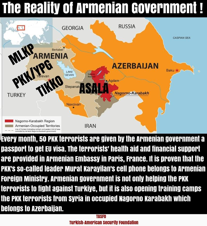 Avropada lobbi çalışmaları üçün gönderdiyi PKK-lılar, Qarabağda, Azərbaycana qarşı savaşmaları üçün yerləşdirdiyi PKK-lılar, Ermənistandan Türkiyəyə girişi, HDP-li Bələdiyyə başkanına sahib Tuzluca üzərindən həyata keçirilən PKK-lılar, Ermənistanın, eyni məzhəbdə, yəni ortodoks — olan Yunanıstan kimi Türkiyəyə qarşı bir nömrəli terror müttəfiqidir.