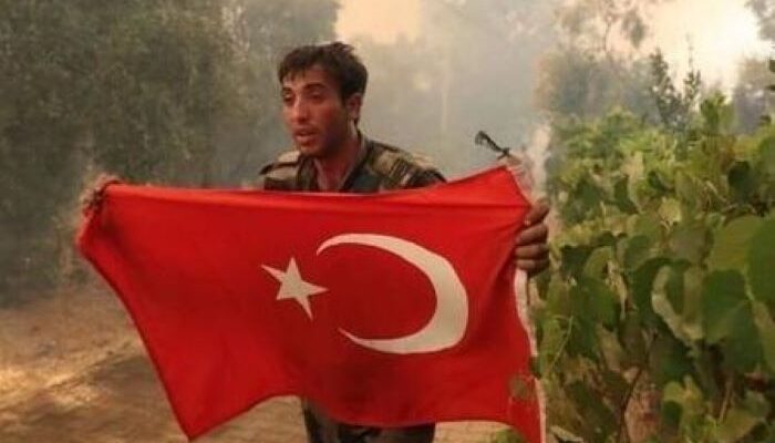 Fedai.az Musavat.com-a istinadən xəbər verir ki, “TRT Haber” bildirir ki, FHN əməkdaşlarının təxliyə olunmuş bölgədəki boş evlərin həyətlərində asılmış bayraqları toplayaraq yanğından mühafizə etmələri diqqətdən yayınmayıb.