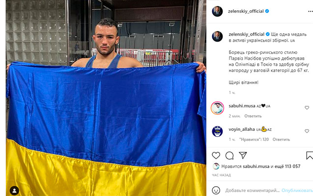 Zelenski paylaşımda bunları yazıb: «Ukrayna üçün daha bir medal…Yunan-Roma güləşçisi Pərviz Nəsibov Olimpiadada uğurlu çıxış edib gümüş medal qazandı. Səmimi təbriklərimi çatdırıram”.