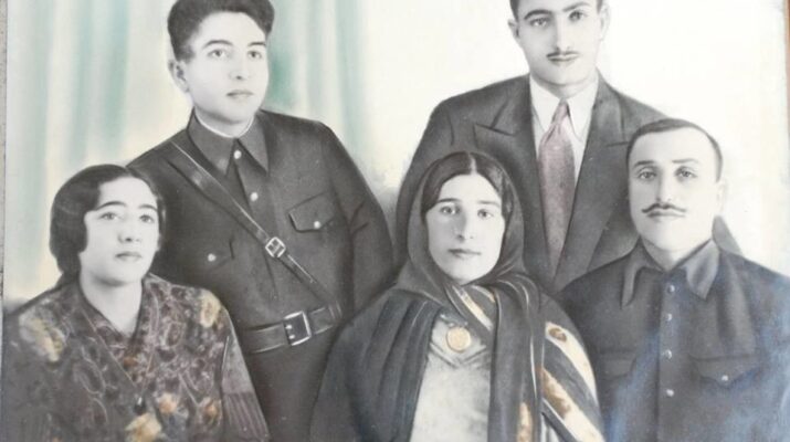FOTO: Sağdan: (əyləşənlər) Qaçaq Şahmalının kürəkəni Əli, qızı Brilyant, gəlini Xədicə, (ayaq üstə) oğlu Əli, oğlunun qaynı Şərif