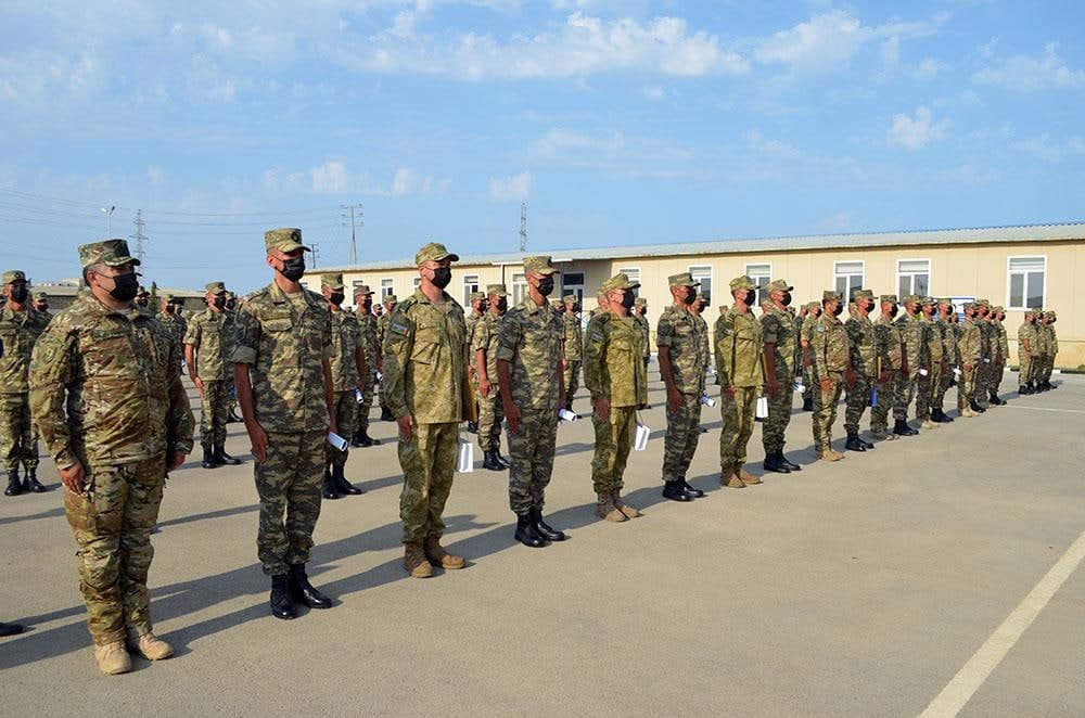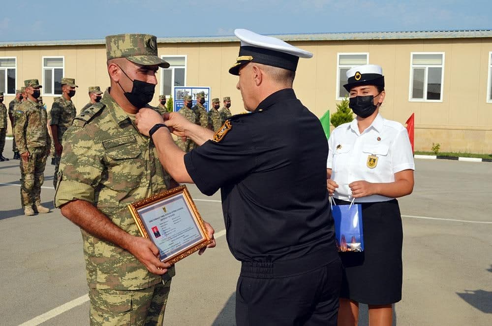 Sonra kurs birincisi tərəfindən rəmzi yaş kötüyünə emblem vurulub və məzunlara sertifikatlar təqdim edilib. Kursda fərqlənən hərbi qulluqçular və təlimatçılar fəxri fərman və qiymətli hədiyyələrlə mükafatlandırılıb.