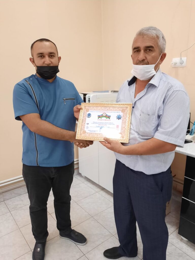 Azərbaycan Vətən Müharibəsi Veteranları İctimai Birliyi (AVMVİB) Sumqayıt şəhər şöbəsi rəhbərliyi müharibə veteranları və şəhid ailələrinə göstərdiyi diqqət və qayğıya görə diş həkimi Elçin Arif oğlu Nəsibovu Fəxri fərmanla təltif edib.