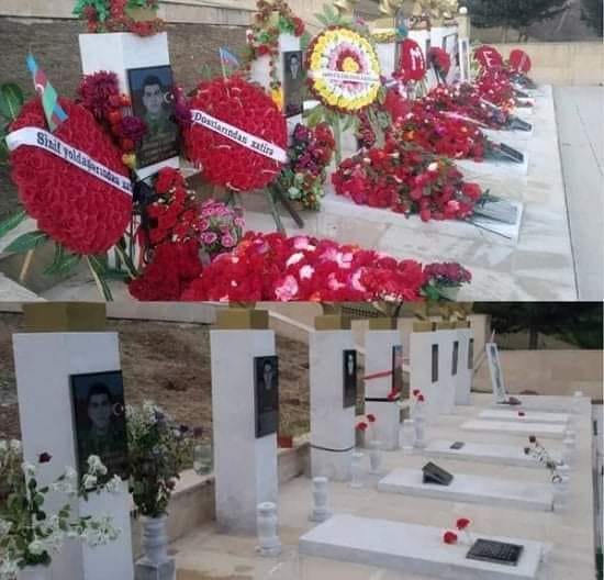 Oğuz rayonunda şəhidlərimizə və onların ailələrinə qarşı tərbiyəsizlik edilərək məzarlar üzərindəki əklil və bayraqları yığıb zibilliyə atıblar.