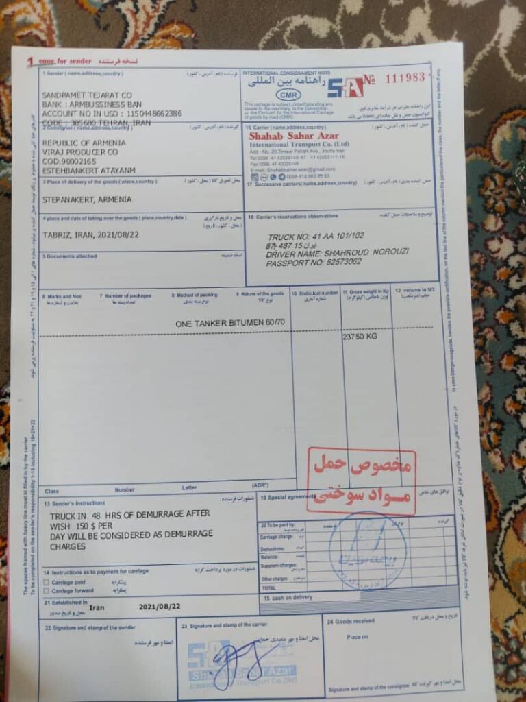 Bu barədə erməni Para tv saytı məlumat yayıb. Bildirilir ki, Azərbaycan polisi azərbaycanlılar Vorotan icmasının Gorus-Qafan hissəsində Xankəndi və İrəvana bitum daşıyan (bəzi mənbələrdə isə Xankəndinə və İrəvana sement daşıdığı bildirilir) iki iranlı sürücünü həbs ediblər.