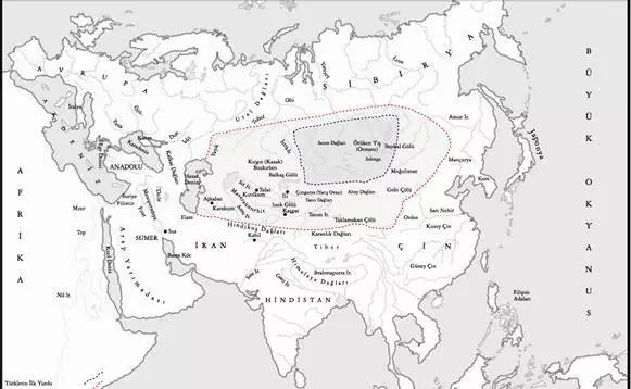 Hipotetizmə belə ehtiyac görülmədən, Çayçasta Gölü, Aral Gölüylə dəyişdirilməkdədir. Hukaryaya gəldikdə («Yüksək Hara»); Bunlar Pamir-Altay və Tyan-Şan bölgələridir.