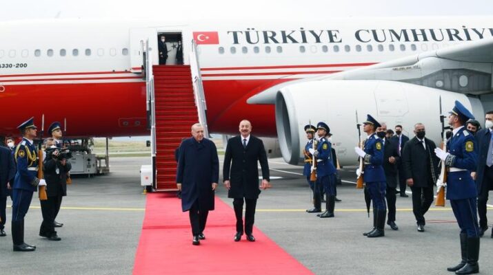Türkiyə Prezidenti Rəcəb Tayyib Ərdoğanı hava limanında Azərbaycan Prezidenti İlham Əliyev qarşılayıb.