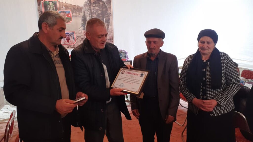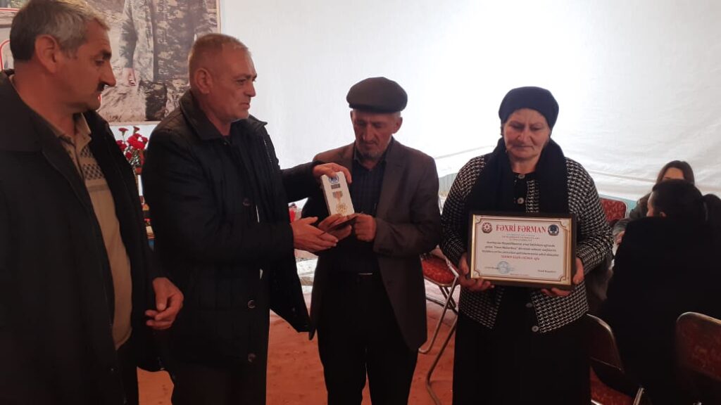 Şəhidin cənnətdəki ilk doğum günü münasibətiylə şəhid Rəşid Loğman oğlu Tahirova AVMVİB sədri Füzuli Rzaquliyev adından AVMVİB-nin təsis etdiyi Xatirə medalını şəhidin ailəsinə təqdim etdilər.