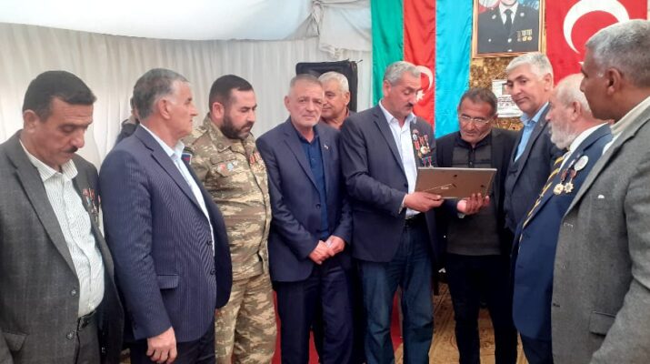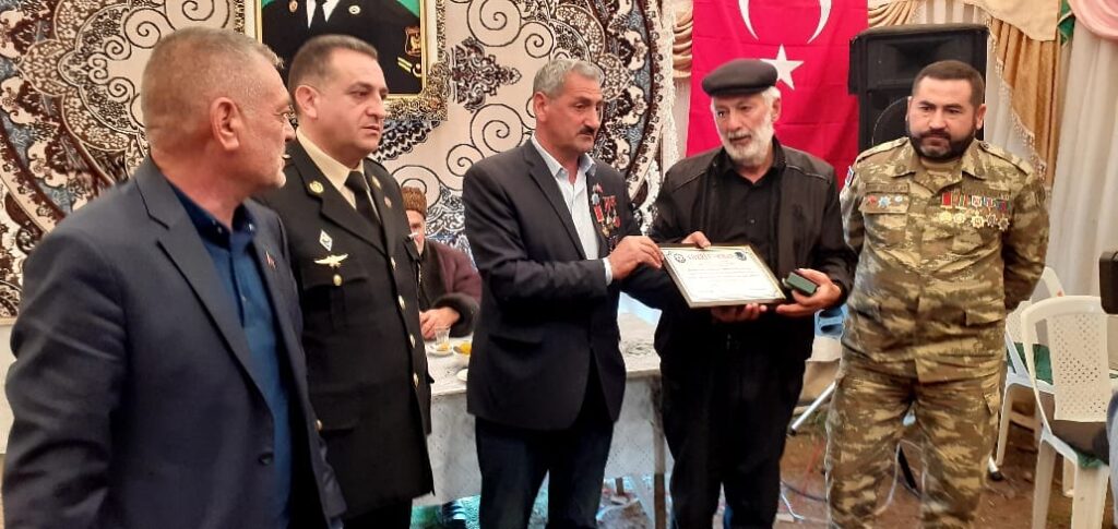 Azərbaycan Vətən Müharibəsi Veteranları İctimai Birliyi (AVMVİB) Beyləqan rayon şöbəsinin sədri Əlövsət Məmmədov AVMVİB adından Fəxri fərmanı şəhidin qardaşına təqdim edib.