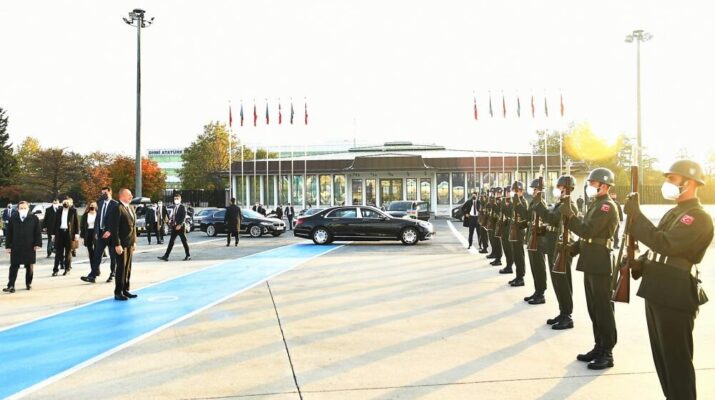 Hər iki ölkənin dövlət bayraqlarının dalğalandığı İstanbulun Atatürk Hava Limanında Azərbaycan Prezidentinin şərəfinə fəxri qarovul dəstəsi düzülmüşdü.