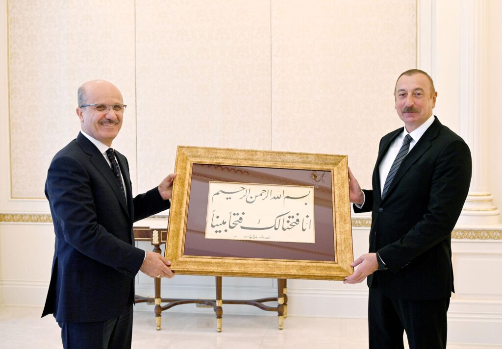 Sonda dövlətimizin başçısına xatirə hədiyyəsi təqdim olunub.