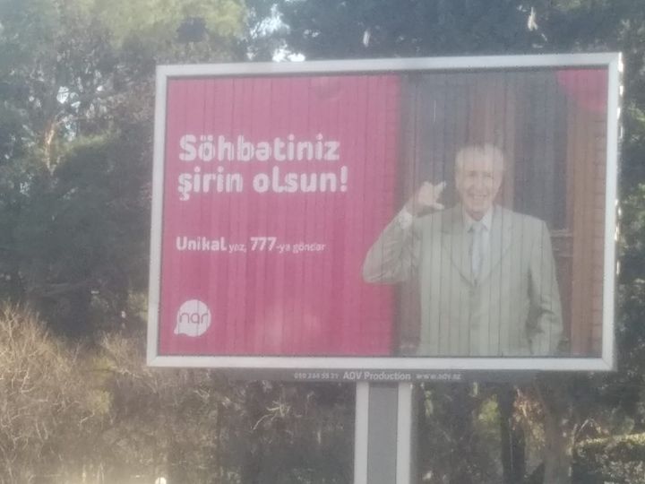 Bu dəfə isə Dövlət Reklam Agentliyi Sumqayıt şəhərində Şəhidlər Xiybanının girişinə böyük bir Narmobileyə aid reklam plakatı yerləşdirib: «SÖHBƏTİNİZ ŞİRİN OLSUN!»
