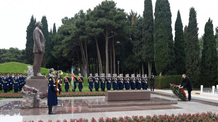 Prezident İlham Əliyev Ulu Öndərin məzarı önünə əklil qoyub.
