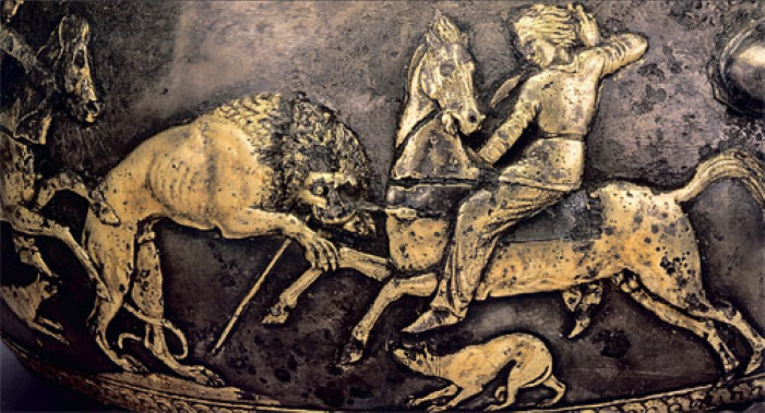 Belində, silahları alınmış qınlar olan bir kəməri var. Savaşçı Ər-xatundur, yəni Amazonkadır.