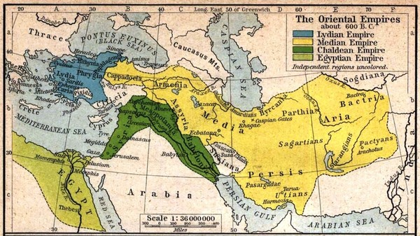 Onlar e.ə. VIII-VII əsrlərdə Assuriyanin tabeliyi altına düşürlər. E.ə.650-625 -i illərdə isə Turanlılar Midiyaya yiyələnirlər. E.ə. 625- ci ildə Midiya müstəqilliyə nail olur və Farsdan Kaspi darvazalarına qədər və Xəzərdən Mesopotamiyaya qədər olan əraziləri özunə birləsdirir. E.ə. 550-ci ildə II Kir Midiya dovletini suquta ugradana qədər farslar Midiyanin tabeliyində qalırlar. E.ə. 550-ci ildə II Kir farsların Əhəməni dövlətini yaradır. Əhəməni dövləti e.ə.330-cu ildə Makedoniyalı Iskəndər tərəfindən suquta ugradılır. Iskəndərin ölümündən sonra həmin ərazidə Suriya padşahlığı /Selevkiler dövləti/ yaradilir.