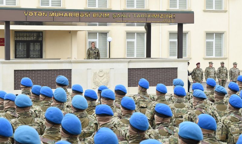 Ulu Öndərin ordu quruculuğu sahəsində gördüyü işlərin nəticəsində Azərbaycan Ordusu demək olar ki, sıfırdan yaranmağa başlamışdır və illər keçdikcə ordumuz öz gücünü artırmışdır. Bunu biz işğal dövründə müxtəlif zamanlarda görmüşük, o cümlədən Aprel döyüşlərində. Aprel döyüşləri işğalçılar üçün bir mesaj, bir siqnal idi ki, işğala son qoyun, torpaqlarımızdan çıxın, rədd olun. Bizim Aprel döyüşlərindəki qələbəmizdə xüsusi təyinatlıların çox böyük xidmətləri olmuşdur. Ancaq əfsuslar ki, Aprel hadisələri işğalçılar üçün dərs olmadı. Onlar işğalı əbədiləşdirmək üçün öz səylərini davam etdirdilər və işğalı əbədi etmək üçün Azərbaycana, Azərbaycan Silahlı Qüvvələrinə hədə-qorxu gəlməyə davam etdilər. Bizi yeni müharibə ilə hədələyən düşmən İkinci Qarabağ müharibəsində öz dərsini aldı. “Qarabağ Ermənistandır və nöqtə” deyən düşmən bu gün “Qarabağ Azərbaycandır” deyir. Nəyin hesabına? Danışıqlar hesabına yox! Güc hesabına, qüdrət hesabına, Azərbaycan Ordusunun Zəfəri hesabına! Biz güclü ordu yaratmışıq. Bundan sonra da bu istiqamətdə işlər aparılacaq. Mən Prezident kimi öz səlahiyyətlərimi icra etməyə başlayan zaman demişdim ki, mənim üçün Prezident və Ali Baş Komandan kimi birinci vəzifə ordu quruculuğudur. Çünki torpaqlarımız işğal altındadır, danışıqlara ümidlərimiz tükənib və güc yolu ilə biz bu məsələni həll etməliyik. Bunu illər boyu bəyan edirdim, çalışırdım Ermənistan rəhbərliyi, nəhayət anlasın ki, Azərbaycan xalqı və Azərbaycan rəhbərliyi, Azərbaycan Ordusu bu işğalla heç vaxt barışmayacaq. Bunu rəsmən bəyan edirdim ki, nəyin bahasına olursa-olsun, torpaqlarımızı düşmənin əlindən alacağıq, ərazi bütövlüyümüzü bərpa edəcəyik. Belə də oldu.