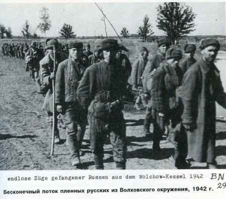 Kimsə mənə «babamın qəbrini tapmaq istəyirəm» yazıb. Qəbirlər — zad yox idi. 1941-42-ci ilin yayında milyonlarla insan təslim oldu. Avadanlıq və texnikanı atıb almanların yanına getdilər. Başqa hara getmək olardı ki? Onlar dayandıqları səngərlərdə aclıqdan ölürdülər. Almanların özlərinin yeməyə bir şeyləri yox idi və sursat da zəif idi. Buna görə də, onları sadəcə yarğanlardan atdılar, iki və ya üç nəfər silahlını arabaların yanına gözətçi qoydular. Almanların özləri rusların belə bir kütləvi şəkildə təslim olmağını gözləmədiklərindən, buna hazır deyildilər.